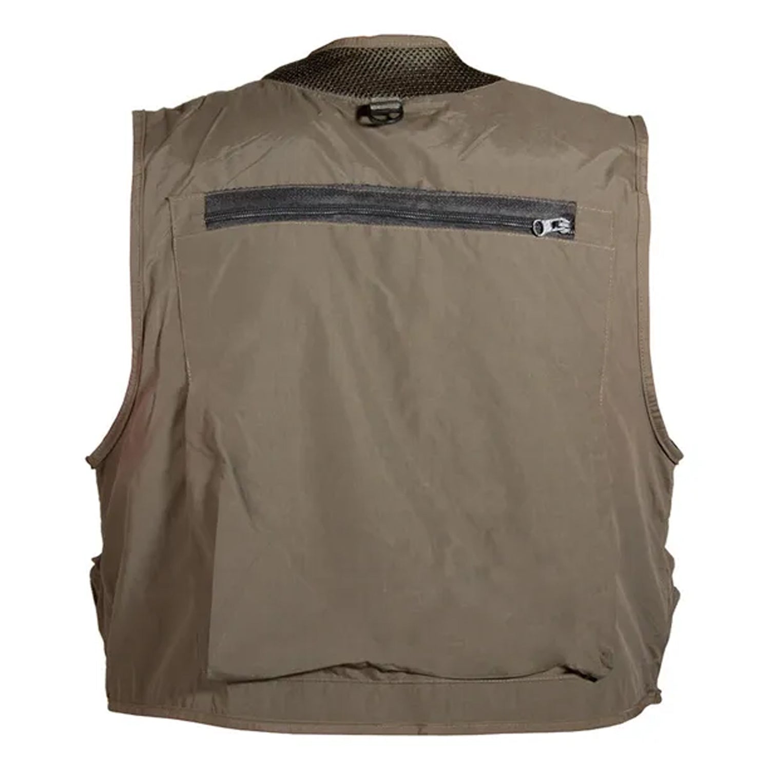 Cuenta con un cuello acolchado de malla y forro interior transpirable que mejoran la ventilación. Incluye tira sujeta-cañas en el pecho, dos bolsillos superiores con compartimentos y anillas porta-accesorios, y dos amplios bolsillos con cierre de cremallera en la parte inferior, ideales para guardar cajas con moscas o señuelos.