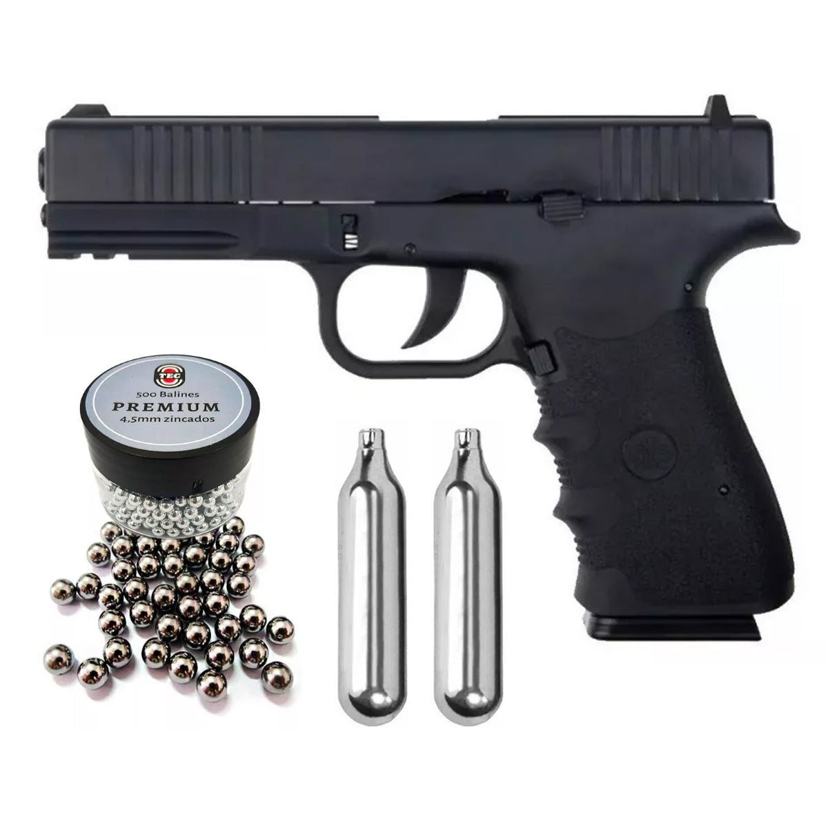 PISTOLA DE CO2 BALINES METALICOS KWC GLCOK 17 CON BLOWBACK + 2 CO2 + 500 BALINES