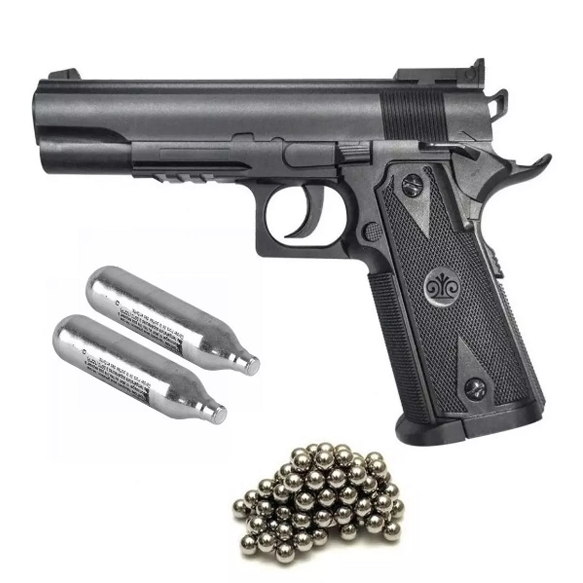PISTOLA DE CO2 P1911 MATCH COLOR NEGRO CAL 4,5mm + 2 CO2 + 500 BALINES