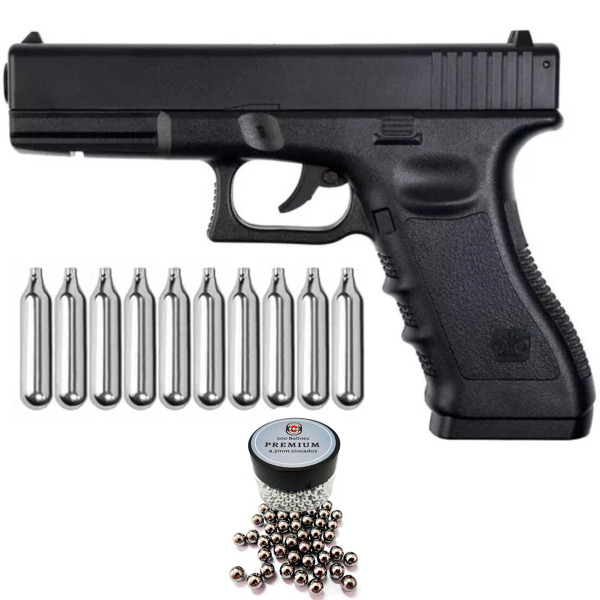 PISTOLA DE CO2 STINGER GLOCK 17 POLIMERO CAL 4,5MM + 10 CO2 + 500 BALINES
