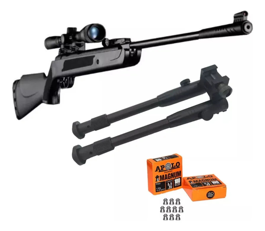 Rifle Caza Postones 5.5 + Bipode + Mira 4x20 + 100 Postones